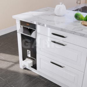Chất liệu: Thùng tủ bằng thép, sơn tĩnh điện, mặt thùng gạo bằng kính đen